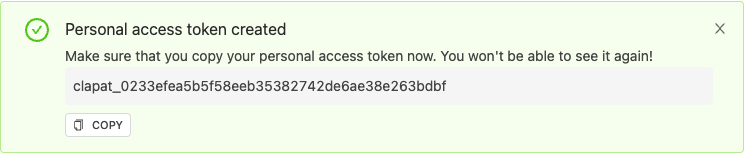 - Copy the token immediately. The token will only be shown once and cannot be retrieved later.